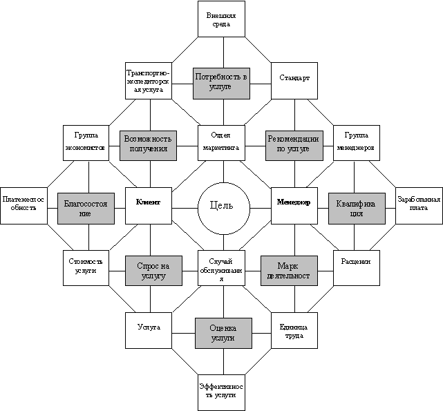 Рис.3. Модель транспортно экспедиторской деятельности маркетинговой системы предприятия сферы услуг.
