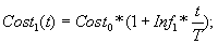 Будем считать, что уровень инфляции составляет в год , где i – год моделирования. Тогда стоимость одной транспортно-экспедиторской услуги в течение одного шага моделирования T (обычно считают равным его одному году) изменяется по формуле: