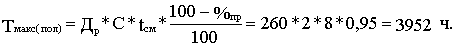 в расчетах принимается эффективный максимально-возможный фонд времени работы оборудования при заданном режиме сменности;