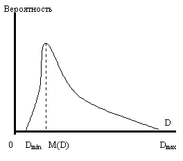 Для обоснования метода количественной оценки интенсивности конкуренции на рынках, следует воспользоваться графической интерпретацией распределения долей конкурентов на рынке. Лучшей моделью при этом будет служить график изменения плотности распределения рыночных долей фирм-конкурентов, общий вид которого представлен на рисунке 8. Легко убедиться в том, что распределения имеют вид логнормальной функции с различными асимптотами - левой или правой. Тип рынка вполне может быть определен в зависимости от того, на какую часть шкалы рыночных долей предприятий приходится математическое ожидание наибольшего количества предприятий. Если математическое ожидание приходится на крайнее левое значение (кривая, подобная изображенной на рисунке 8), то перед исследователем типичное распределение, характерное для двухсторонней полиполии. Если же математическое ожидание находится в правой части графика и приближается к максимальной доле рынка, то подобное распределение характерно для двухсторонней монополии.