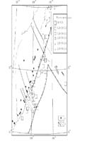 4. Данные о пространственном распределении эпицентров землетрясений [6] свидетельствуют о том, что в зоне субдукции дуги Срединного хребта еще сохранились остаточные движения. Возможно, что движения еще не совсем прекратились и на участке между Малко-Петропавловской и Алеутской зонами поперечных разломов. Эти разломы являются трансформными, и по ним произошел перескок зон субдукции (рис. 4).