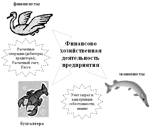 Отечественная практика сводится к наличию 3 подразделений: бухгалтерской службы, финансового отдела и планово-экономического отдела. Эти подразделения представляют собой три группы разных людей: бухгалтеров, финансистов и экономистов, взаимоотношения между ними были испорчены еще в советские времена. Их взаимодействие в финансовой деятельности напоминают знаменитых лебедя, рака и щуку. В зависимости от силы позиции руководителя службы - Финансового директора, Главного бухгалтера и начальника планово-экономического отдела (Главного экономиста), каждый из них натягивает одеяло в свою сторону.