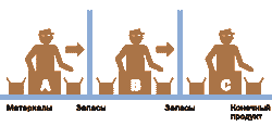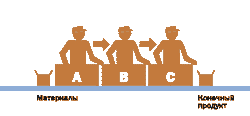 Схема "Один рабочий - одна операция" сама по себе эффективна, но перевозка материалов и ожидание увеличивают общее время работ