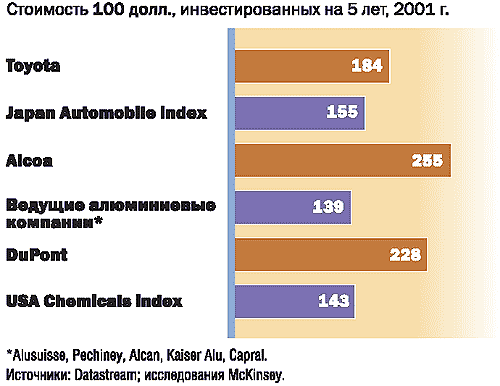 Внедрение стройного производства дало хороший результат. Среднегодовой темп роста продаж Alcoa с 1996 по 2000 г. составил 15%, чистый доход в этот период увеличивался на 30%, а соотношение капитальных расходов к продажам сократилось на 35%. Экономия от внедрения системы стройного производства за три года достигла 1 млрд долл. Alcoa вырвалась из цикла, в котором ее чистый доход был привязан к спотовым ценам на алюминий. Кроме того, благодаря заложенной в метод стройного производства нацеленности на удовлетворение потребностей клиента Alcoa открыла новый перспективный рынок.