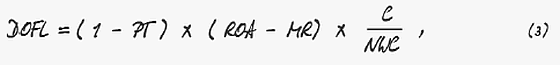 Данное явление получило название эффекта финансового рычага (DOFL). Следовательно, эффект финансового рычага (DOFL) - это изменение рентабельности собственных средств, полученное благодаря использованию заемных средств, при условии, что экономическая рентабельность активов фирмы больше ставки процента по кредиту.