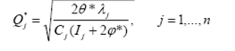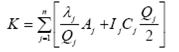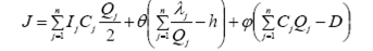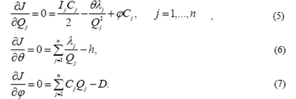Пусть λj означает годовую интенсивность спроса (предполагается, что спрос не случаен), Aj – фиксированные издержки заказа, Сj - стоимость единицы изделия (предполагается, что она не зависит от Qj) и Ij- коэффициент издержек содержания изделий j-го типа. Тогда суммарные годовые издержки по всем типам изделий составят