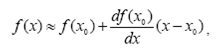 Рассмотрим уравнение f(x)=0. Предположим, что x0 является приближенным решением, т.е. значение f(x0) близко к 0. Используя первые два члена разложения в ряд Тейлора, имеем
