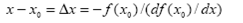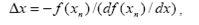 Заметим, что в качестве новой оценки решения уравнения f(x)=0 можно использовать x1=x0+Δx. Такой процесс повторяется, и на (n+1)-м шаге имеем