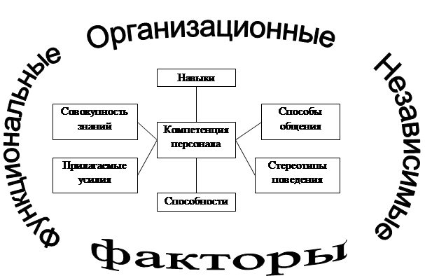 Факторы, влияющие на развитие компетенции персонала, но не зависящие от внешних и внутренних воздействий, называются независимыми. Они характеризуют работу руководителя и влияют на эффективность и результативность труда.
