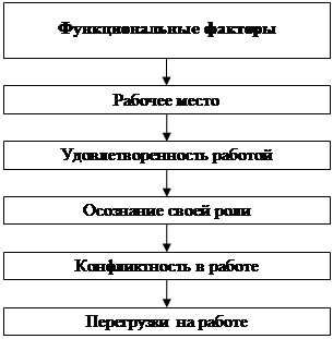 К функциональным факторам, характеризующим развитие компетенций, относятся: рабочее место как инструмент контроля труда в целях обеспечения помощи руководителям и самим сотрудникам; удовлетворенность работой, оказывающая заметное влияние на мотивацию персонала; деятельность руководителя, связанная с выполнением множества ролей, каждая из которых требует определенных знаний, навыков, а нередко и личной интуиции; конфликтность в работе, которая может быть результатом различия ценностей индивида и целей работы, представления работника о процессе выполнения работы и требований работы; перегрузки на работе как "синдром хронической усталости".