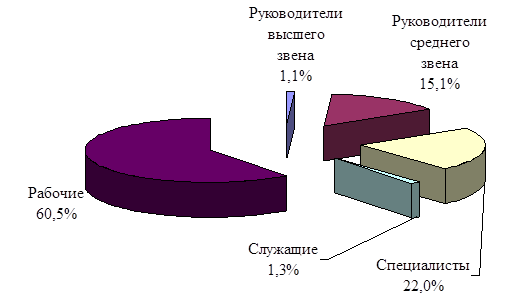 В 2005 году автором совместно с отделами управления персоналом ОАО "Кубаньэнерго" был проведен внутренний аудит кадров и кадровых процессов за 2001–2005 гг., в рамках которого проанализирован качественный и количественный состав рабочих, служащих, в том числе специалистов и руководителей ОАО. (рис. 5):