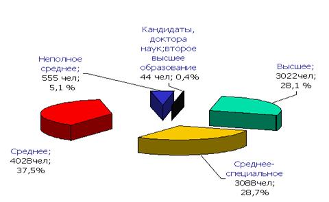 Образовательный и квалификационный уровень персонала оценивается как высокий. Удельный вес работников с высшим и средним специальным образованием соответственно составляет 28,1% и 28,7% (рис. 6):