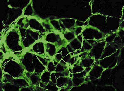 Рис. 3. Эндоваскулярная сеть, образованная in vitro чистой выделенной популяцией клеток эндотелия,