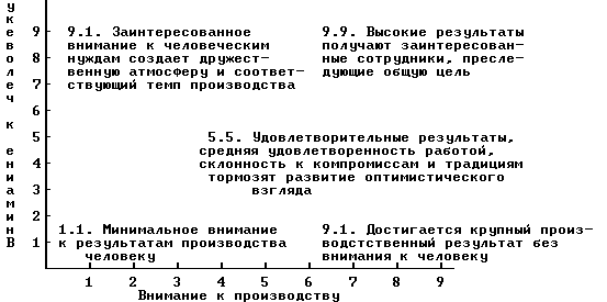 Например, код 9.1 обозначает "жесткий" курс администратора, для которого производственный результат - все, а человек - в лучшем случае, исполнитель, а по существу, никто.