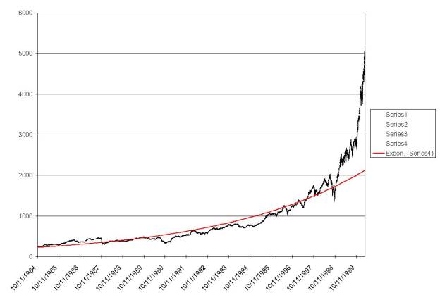 Вот как все виделось восхищенному наблюдателю динамики роста индекса Nasdaq вплоть до 13 марта 2000 г.