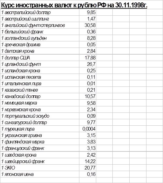 Проанализировав валютную ситуацию за ноябрь 1998 года я хочу сделать несколько выводов: