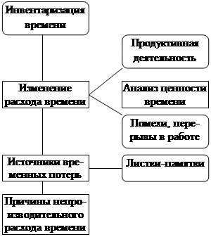Ценен тот руководитель, который знает своё дело, умеет хорошо управлять и добиваться поставленных целей, независимо от его внешности и образования. Это главный стандарт настоящего руководителя. Но даже при наличии всех выше перечисленных навыков руководитель не будет успешным если он не будет правильно организовывать своё время и рабочий день. Ведь такой ресурс как время стоит на ряду со многими другими ресурсами: людьми, финансами и сырьём. Менеджер всегда находится в трёх измерениях в настоящем, прошлом и будущем. Время – необратимо. Его нельзя накопить, умножить или передать. Оно проходит безвозвратно. К сожелению в России с давних времён сложилось представление о руководителе, как о человеке с минимальным количеством свободного времени, и чем меньше времени имел руководитель, тем более значительной персоной он казался. Но на самом деле это лишь говорит о низком уровне самоменеджмента, который представляет собой последовательное и целенаправленное использование испытанных методов работы в повседневной практике, для того чтобы оптимально и со смыслом использовать своё время.