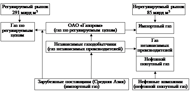 на внутреннем рынке доминирующее положение занимает основной производитель и поставщик газа – более 88% всей добычи сконцентрировано в ОАО «Газпром»;