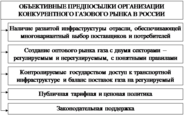 Объективные предпосылки организации конкурентного рынка газа в России в условиях глобализации мировой экономики отражены на рис. 4.