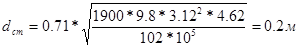 Диаметр стоек определяется по формуле /3, стр. 114/:
