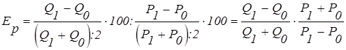 равен: , где - изменение величины спроса, %; - изменение цены, %.