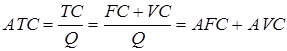График средних и предельных издержек типовой конкурентной фирмы при различных объемах выпуска продукции.