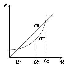 График совокупных доходов, издержек и прибыли фирмы при разном объеме производства.