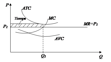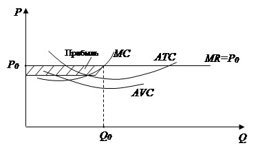График значений цены реализации, средних и предельных издержек при разном объеме про