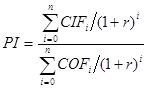 индекс рентабельности инвестиций (PI);