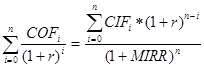 В формуле слева от знака равенства – суммарная дисконтированная стоимость всех оттоков, справа в числителе – суммарная наращенная стоимость всех притоков. Формула имеет смысл, если суммарная наращенная стоимость всех притоков больше суммарной дисконтированной стоимости всех оттоков.