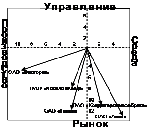 Исключением является ОАО «Виктория», в стратегической позиции которого заметно влияние факторов производства и управления. Если по остальным предприятиям указанная тенденция не изменится, то большинству из них грозит экономическая неустойчивость, прежде всего не со стороны внешней среды и рынка, а из-за неудовлетворительного состояния факторов производства и технологии и неудовлетворительного управления.