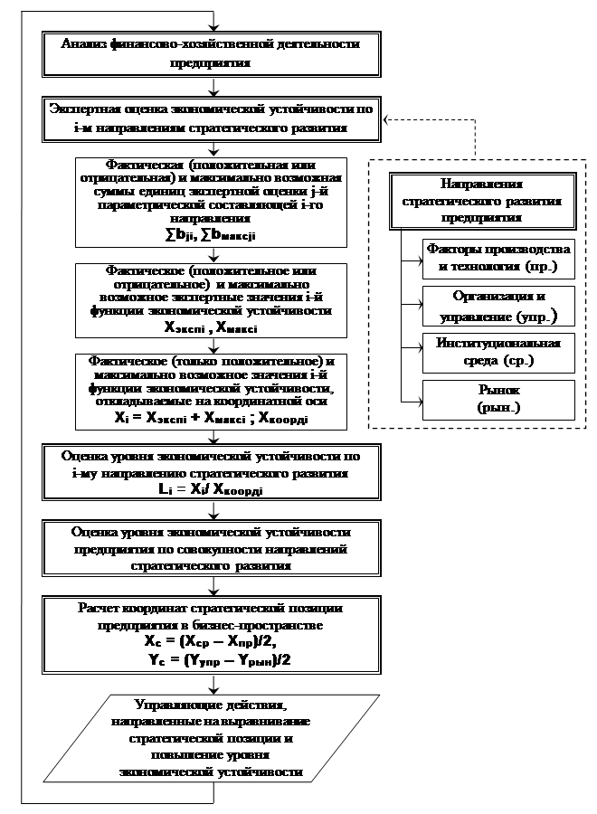 Схема оценки уровня экономической устойчивости и стратегической позиции предприятия в бизнес-пространстве приведена на рис. 4.