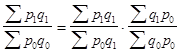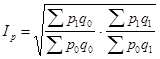 - это индекс качественного показателя. Индексируемой величиной будет цена товара, так как этот индекс характеризует изменение цен. Весом будет выступать количество произведенных товаров. Умножив цену товара на его количество, получаем величину, которую можно суммировать и которая представляет собой показатель, соизмеримый с другими подобными ему величинами.