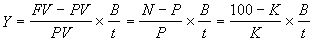 где t – число дней до погашения; Р – цена покупки; N – номинал; К – курсовая стоимость; В – используемая временная база.