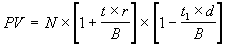 В некоторых случаях, товарные векселя могут выпускаться в виде ценной бумаги с фиксированным доходом, выплачиваемым по ставке r в срок погашения. Современная стоимость такого векселя при учете будет равна: