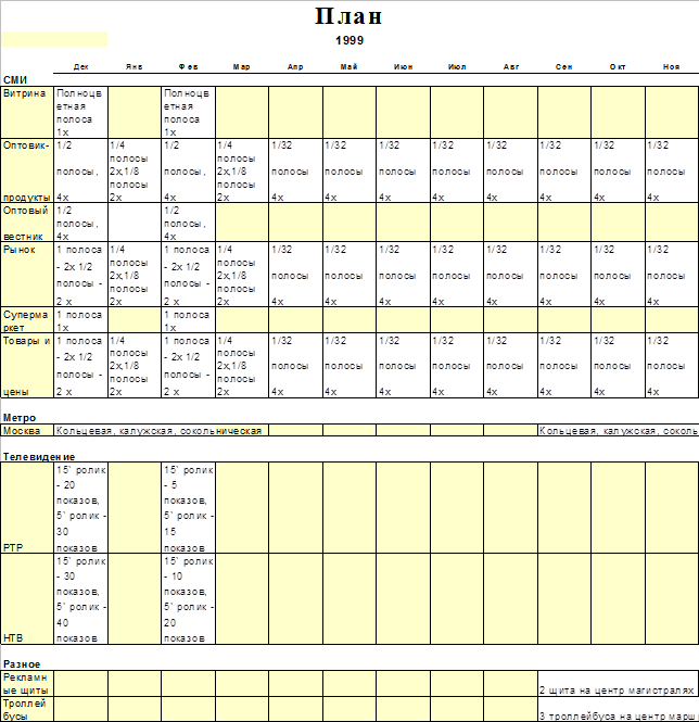 Радио, телевидение, журналы, газеты, метро, щиты, и т.п. |