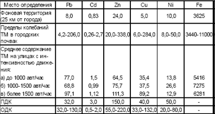 Проведенные исследования аномальных зон показали, что верхний слой урбаноземов, примыкающих к городским автомагистралям, сильно загрязнен такими тяжелыми металлами, как Pb, Cd, Zn, Сu, Ni, Fe. Доля нестандартных проб, превышающих ПДК, наиболее велика для Pb и Сu (82 и 50% соответственно). Наиболее высокие уровни загрязнения в пределах селитебно-транспортных ландшафтов отмечены для свинца (превышение фона до 26 раз и ПДК – 6,5 раз) и цинка (14 и 2,3 раза соответственно). Истирание контактных проводов трамваев и троллейбусов в процессе эксплуатации приводит к загрязнению прилегающих территорий медью в количествах, в 15-57 раз превышающих фоновые значения и в 2-7 раз – ПДК.