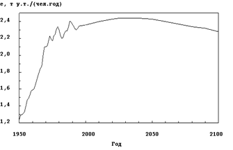 | Рис. 3-5. Прогноз мирового потребления энергии е на душу населения