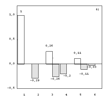 Рассмотрим теперь относительный вклад каждого из указанных факторов в изменение климата в масштабе десятилетия и заканчивающегося столетия. Результаты такого сопоставления приведены на рис. 3-7, где вклад каждого из факторов представлен по отношению к парниковому эффекту, принятому за единицу. Как видно на рисунке, суммарный (1+2) антропогенный вклад в изменение климата на декадной протяженности по своей величине занимает все еще лишь третье место, уступая влиянию вулканов и автоколебаний в системе атмосфера-океан. При переходе от декадной к вековой изменчивости климата значение парникового эффекта, имеющего постоянный положительный знак, усиливается. Однако суммарная величина атропогенного воздействия (1+2) вполне соизмерима с суммарным вкладом естественных факторов.