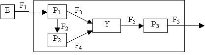 Концепцию экосистемы можно осознать на простой модели, представленной на рисунке 3.2, где Е - движущая сила, Р - свойства, F - потоки, Y - взаимодействие.