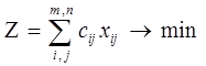 где - стоимость перевозки единицы продукта от i-го поставщика j-го потребителю;