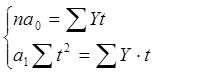 Параметры уравнения прямой линии а0 и а1 в соответствии с МНК определяется решением следующих уравнений с помощью специальной вспомогательной таблицы6: