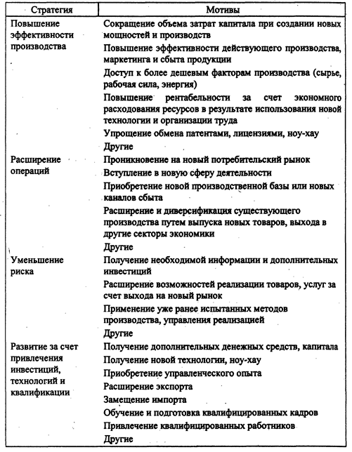 Мотивы объединения усилий участников создания совместного предприятия могут быть различными, но в их основе практически лежит одна из четырех стратегий, обусловивших возникновение совместного предпринимательства: