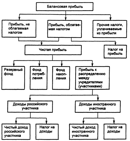 Рис. 2. Схема распределения балансовой прибыли предприятия с российско-иностранным капиталом.