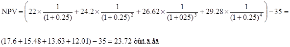 NPV = -7000 = 7232,01-7000 = 232,0,1д.ед