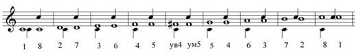 3. Построить от неустойчивых звуков: - две уменьшенные квинты (ум5) на VII и II ступенях - две увеличенные кварты (ув4) на IV и VI ступенях - уменьшенную септиму (ум7) на VII cтупени - увеличенную секунду (ув2) на VI ступени - уменьшенную кварту (ум4) на III ступени в мажоре и на VII ступени в миноре - увеличенную квинту (ув5) на VI ступени в мажоре и на III ступени в миноре