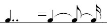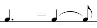 длины. Две точки после ноты обозначают, что нота удлиняется на половину + четверть своей длины. Две одинаковые ноты соединенные лигой называются залигованными. Из них исполняется только первая нота, а вторая (и последующие) показывают на сколько нужно удлинить первую ноту.