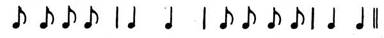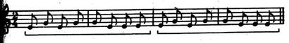 Звуковысотность — чередующиеся соль и ми, поэтому при анализе мотивов основное внимание можно обратить только на ритм, на различные ритмические структуры. Первый мотив состоит из восьмых, а второй —из четвертных длительностей.