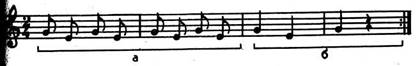 Схема распределения ритмических структур в мелодии следующая: а+б+а+б,