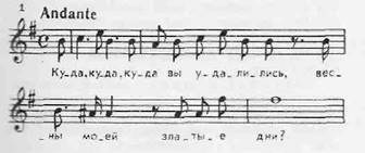 Мы знаем, что стихи отличаются от прозы в первую очередь своей ритмической организованностью, определенным чередованием акцентированных и не акцентированных слогов, наподобие сильных и слабых долей в музыке; стихи бывают оформлены тем или иным распорядком строф, иногда связанным с повторностью (в музыке, как мы увидим, повторение частей — так называемая «реприза» — играет огромную роль); рифма, то есть сходство окончаний, тоже придает стихам оттенок повторности, что еще больше сближает их с музыкой, где сходство небольших частей есть одна из основ музыкальной формы; в поэзии придается особое значение самой звучности стиха как таковой, его окраске, зависящей от подбора различных гласных и согласных — мягкой или острой, звонкой или затуманенной и т. д. (так называемая «инструментовка стиха» — чисто музыкальный термин!); наконец, в поэзии важны не только описываемые события или пейзажи — в ней необычайно большое место принадлежит чувству, настроению, а как мы вскоре убедимся, именно область лирических чувств породила в музыке особенное богатство жанров.